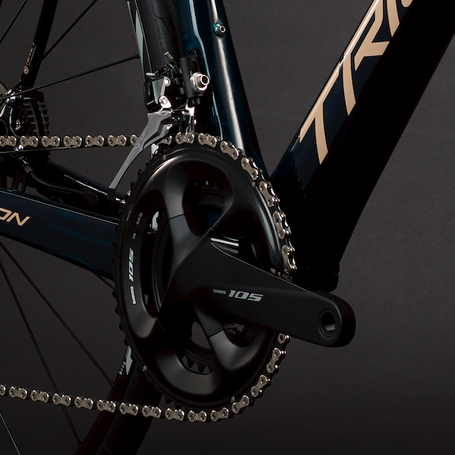 TRIGONストッパーとBBガイドのデザインは、重量を軽減するだけでなく、スムーズなケーブル取り付けを保証します。DI2対応。